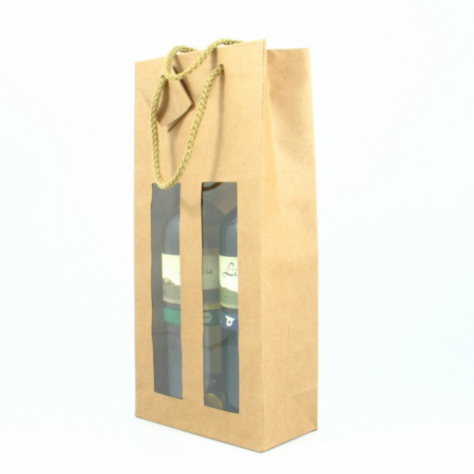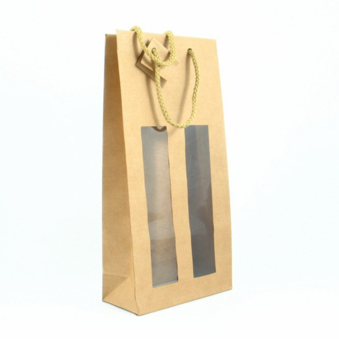 100% gerecyclede karton dubbele wijnzak met een venster zodat het etiket mooi zichtbaar is. Verpakkings eenheid 10 stuks.
