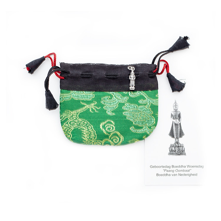 Geboortedag Boeddha hanger/bedel Woensdag, massief 925 zilver, handgesmeed, incl. kaartje met uitleg in het Nederlands en Engels, brokaten opbergzakje en cadeauverpakking van handgeschept papier