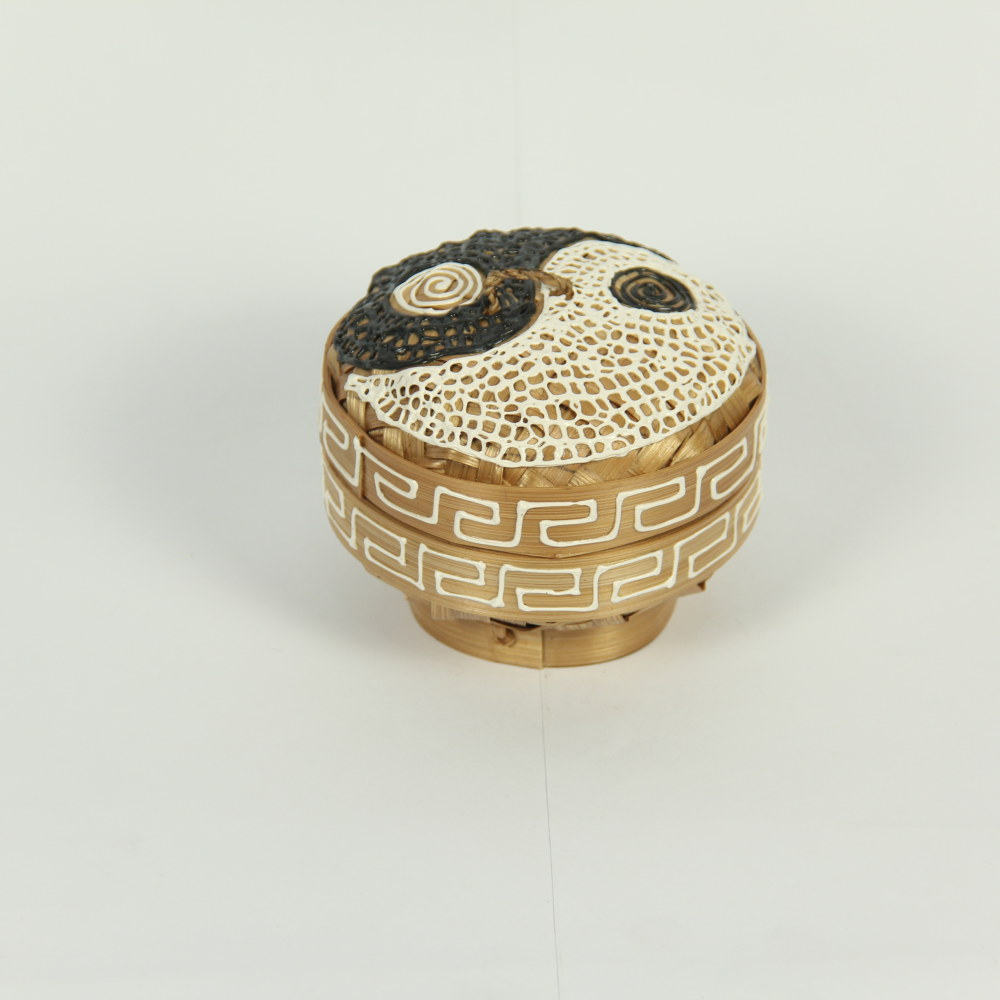 Opbergdoos bamvoe yin yang gehaakt