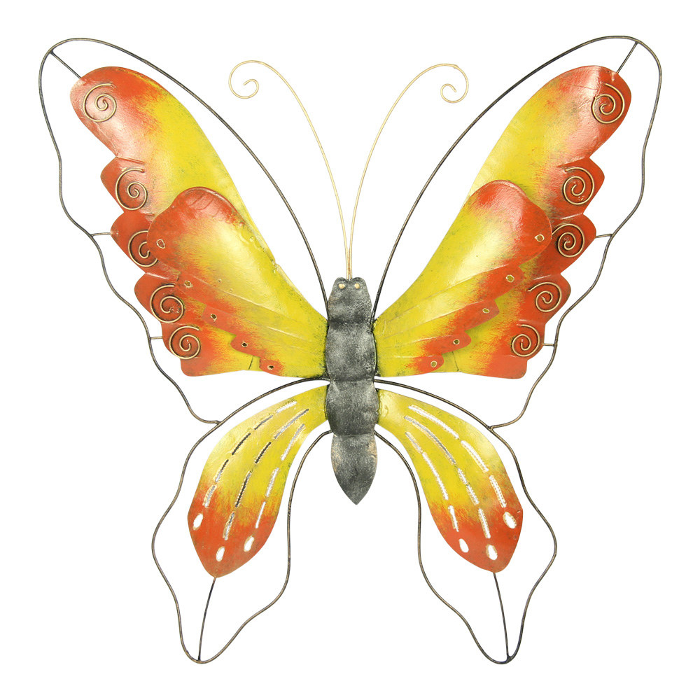Wanddecoratie metaal vlinder geel